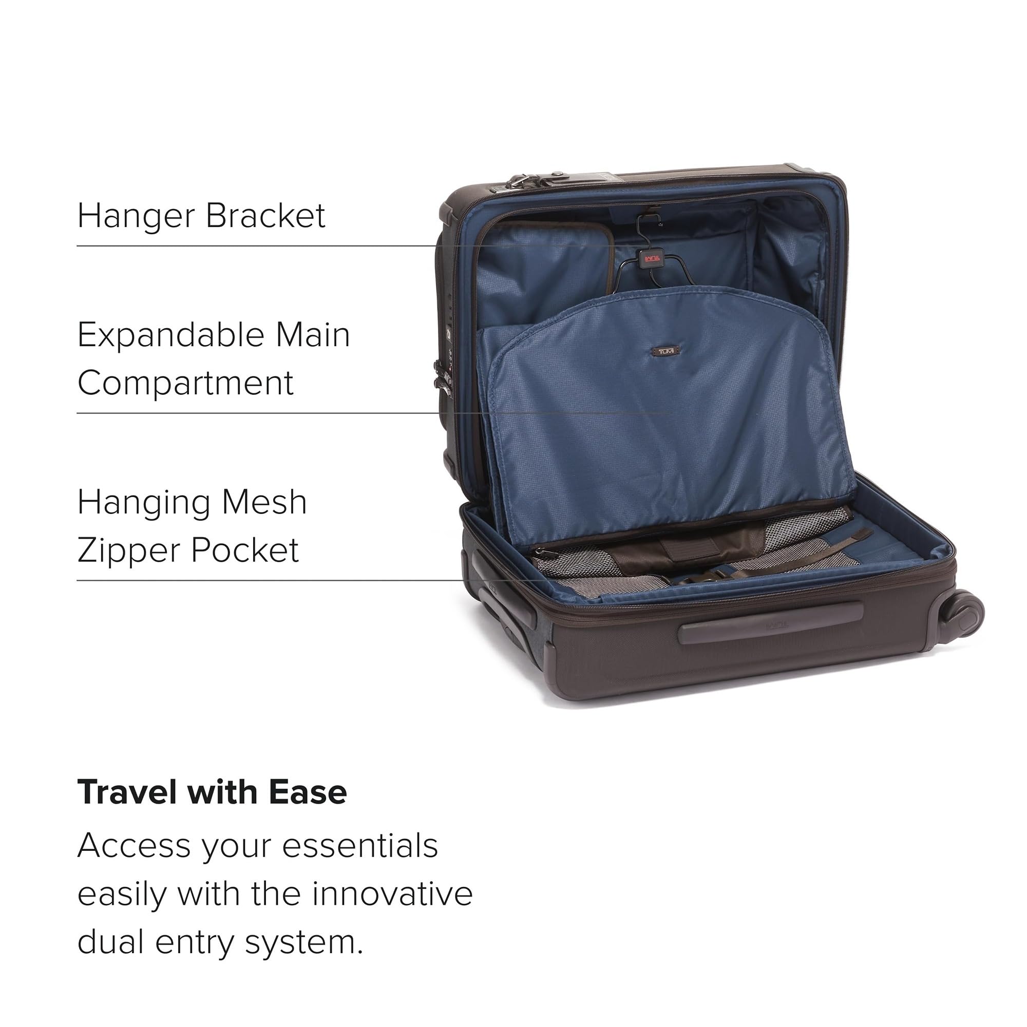 - Durable Travel Suitcase: The TUMI Alpha Large Dual Access Expandable Carry-On is a stylish suitcase featuring FXT ballistic nylon for lasting resilience, along with built-in USB-C charging