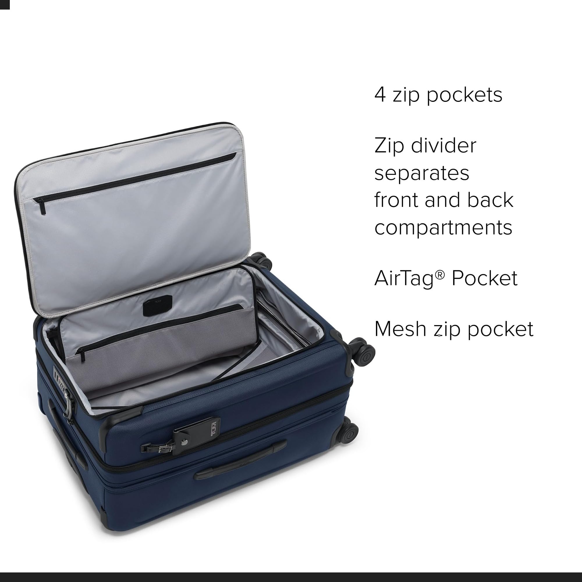 TUMI - Alpha Medium Dual Access Expandable 4-Wheeled Checked Luggage - Zipper Expansion - Durable Ballistic Nylon - Medium Capacity Suitcase with TSA Lock - Navy