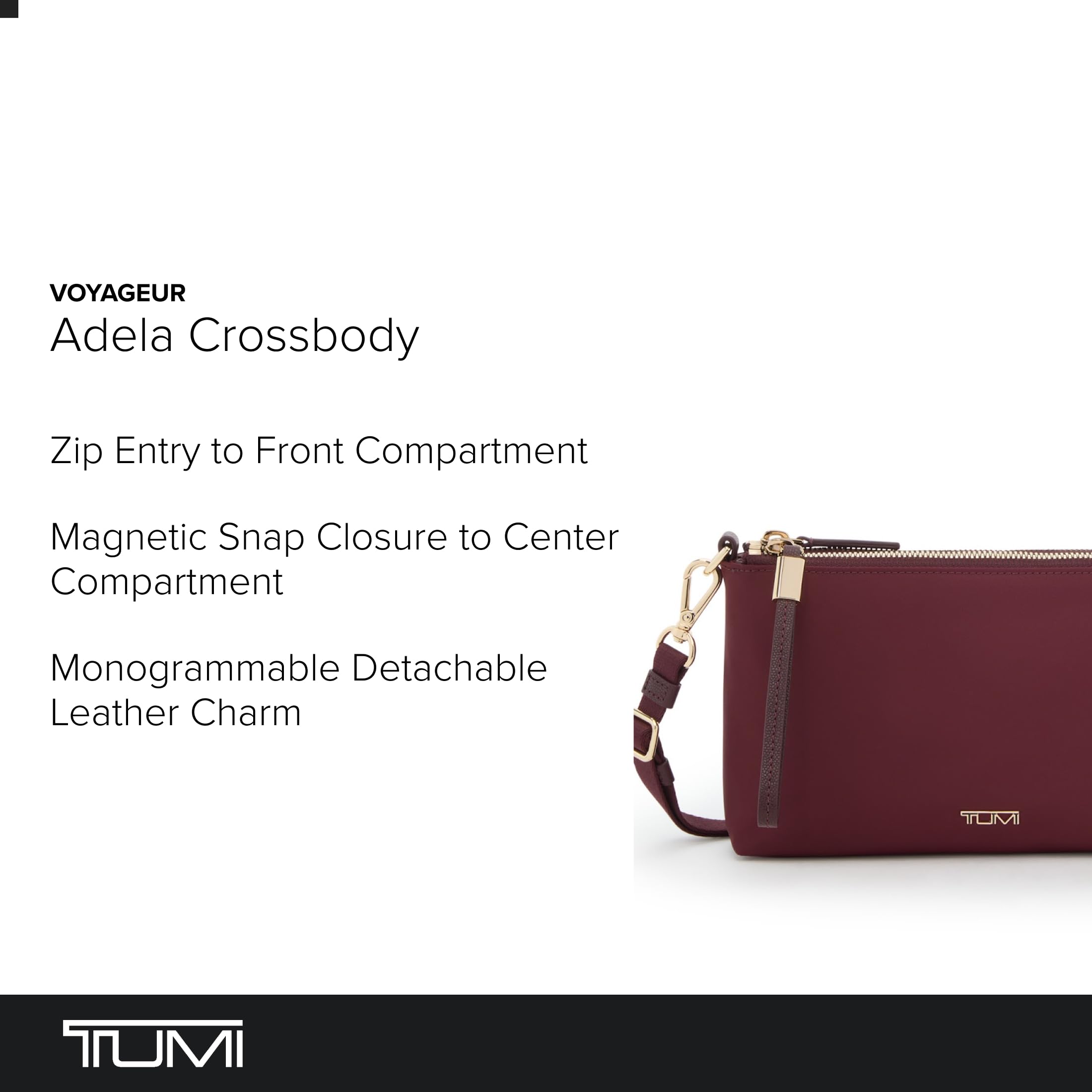 - Zip entry to front compartment| Zip entry to back compartment| Magnetic snap closure to center compartment| Removable & adjustable crossbody strap| Monogrammable detachable leather charm