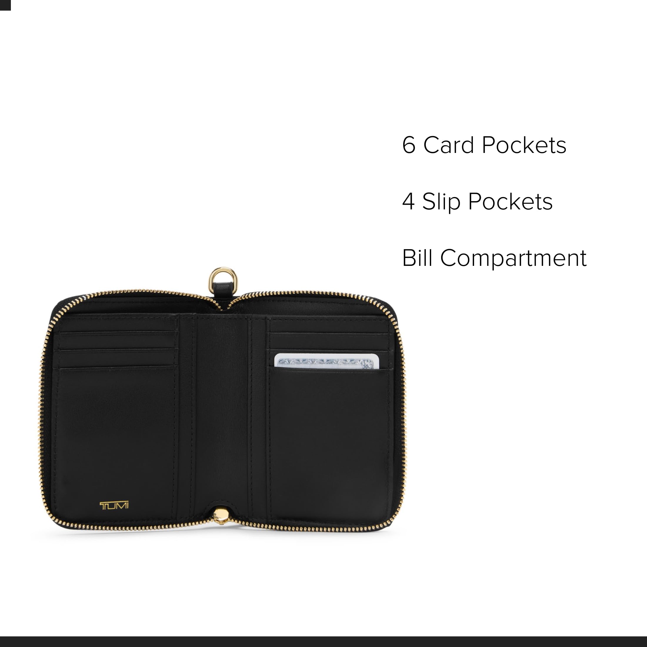 Tumi Womens Bifold Zip Around Black/Gold One Size—
