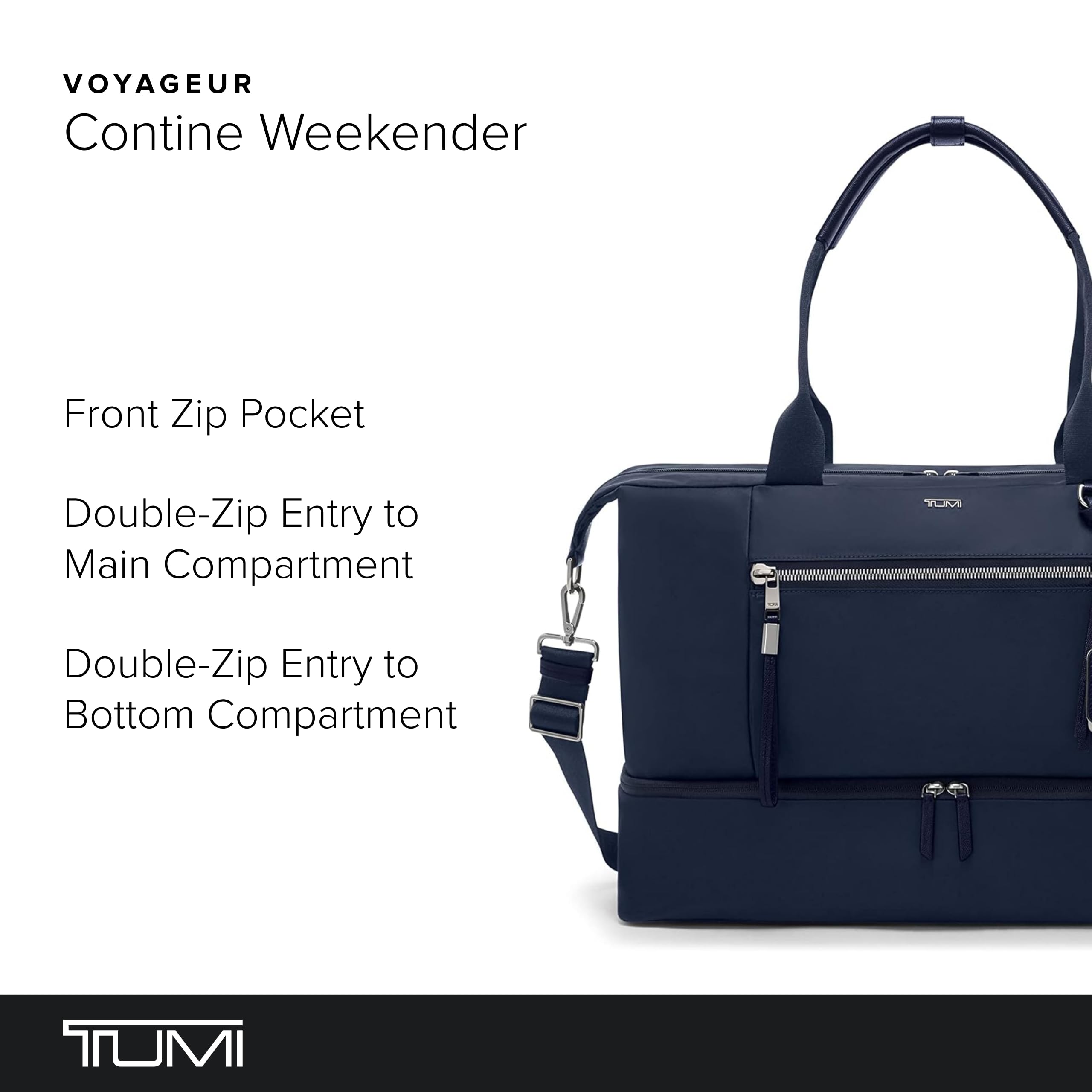 - Premium Weekender Bag: The TUMI Voyageur Contine Weekender is a functional travel bag tailored for women, meeting carry-on requirements with ample storage